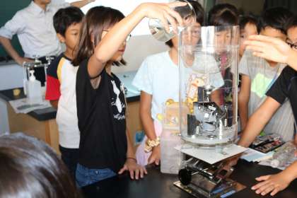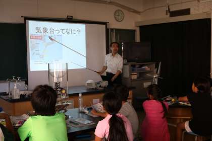 10月7日、大阪管区気象台の高橋宙(たかはし ひろし)さんを講師に迎え、地球の温暖化についてお話を聞いたり、実験を行ったりしました。興味を持った人の中に、将来、気象予報士になりたくなった人もいました。