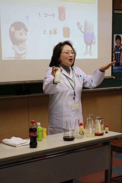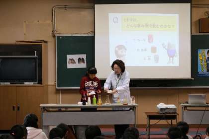 12月19日(月)学年全員で、くすりの正しい使い方について学びました。学校薬剤師の高須先生を講師に招き、お話を聞きました。病気になった時に飲む薬は、どうして水や白湯で飲むのか、実際にお茶と薬を混ぜてみる実験でよくわかりました。お茶の成分が薬と反応して薬の効果がなくなってしまいます。果汁や牛乳、お酒などもよくないことがわかりました。また、薬物乱用についてのお話もありました。誘われて軽い気持ちで試してみることでやめることができなくなる恐ろしい違法薬物。自分の体を一番に考えると、決して誘惑や誘いに負けずきっぱり断ろうというロールプレーもしました。