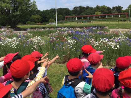 子どもの楽園にはたくさんの遊具があり、みんなで仲良く遊ぶことができました。遊び終わった後は、おいしいお弁当を食べ、とても有意義な時間を過ごせました。円形花壇には、たくさんの植物があり、観察もすることができました。とても思い出に残る1日となりました。