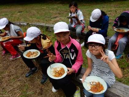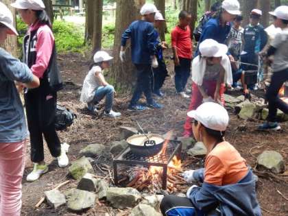 飯ごう炊さん、そろそろできるかな?みんなで作ったカレーは、美味しいなあ!