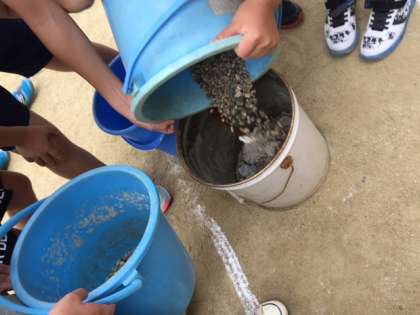 みんなで集めると、様々な大きさの石が集まりました。「こんな石、どこから?」と思うものもありました。