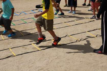3枚目 ラダーコーナー 写真のようなトレーニングラダーを新しく2つ追加し、4つを 使って活動しています。