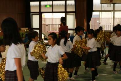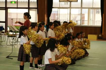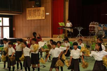 演奏会では全員での演奏後、入部1年目の子どもたちはポンポンをもってダンスを踊ったり、歌ったりします。