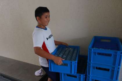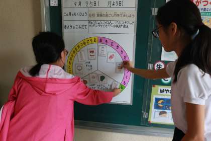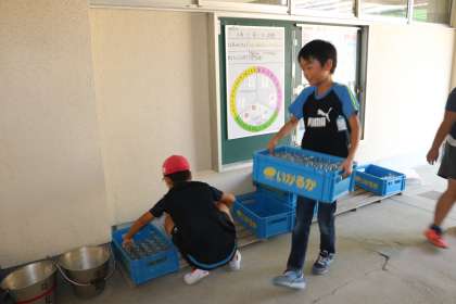 給食委員会の仕事は毎日あります。毎日給食の時間に献立の説明をしたり、クイズをだしたりしています。また、給食ボードに献立をかいたり、牛乳の片づけをしたりとお昼休みも積極的に活動しています。