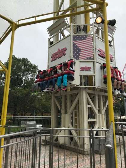 ただ今のナガシマスパーランドの天気は小雨だそうです。ただいま班長の報告が終わり全員元気に活動しています。先ほどスチールドラゴンの運転が開始されました。