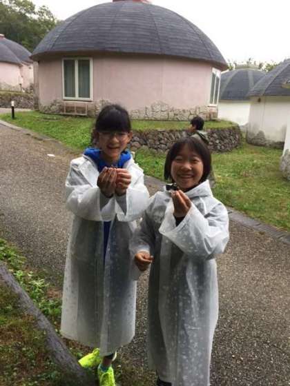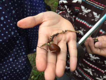 学習会を終えた子どもたちは外で根の出たどんぐりを探しに。
