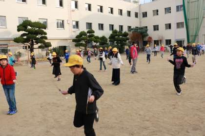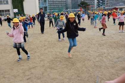 先週の朝会前からなわとびを全校でしています。5分と短い時間ですが、先週隊形移動や事前指導をしていたので、スムースに活動が始まりました。今日はかけ足とびを中心に活動しました。