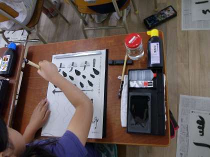 先生のお話をしっかりと聞き、お手本をよく見てしっかりと書けました。