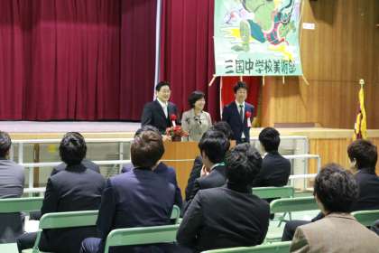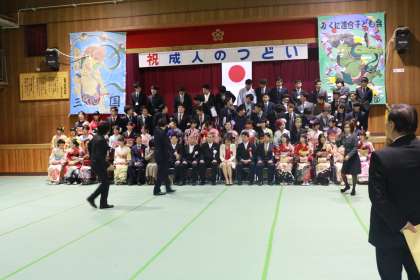 1月8日(月)成人の日に、三国小学校講堂で、成人の集いがありました。8年前の本校卒業生が新成人として、たくさん集まりました。式には、多くの地域の方々が参加していました。8年前の学校長滝川校長先生、吉田教頭先生(今は阿倍野区の校長先生です)、担任だった松下先生も参加して話をしていただきました。三国小学校を卒業した新成人の方々は大変静かに話を聞いていて、見ていたこちらも大変微笑ましく会が行われました。