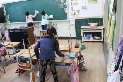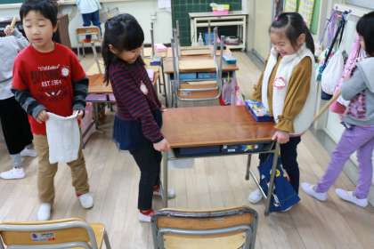 1月10日(水)から掃除が始まっています。1年生も教室や廊下など掃除の仕方も定着し、時間いっぱい清掃しています。学習机も一年生には大変大きく感じられますが、2人で協力して運んでいました。3学期も学級教室や三国小学校をきれいにして、気持ちよく過ごしてくださいね。