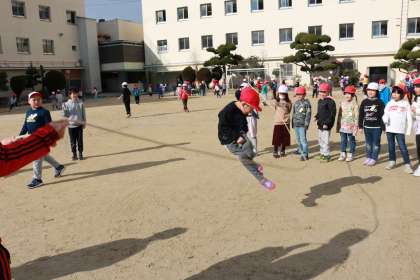 11日(木)3学期最初の三国っ子タイムは1,2年生なわとびチャレンジでした。2年生も寒さに負けずなわとびをしました。いろいろなとび方もできる子も増え、友達と、先生と、体育委員の児童とそれぞれ楽しく活動できました。長縄を行った学級もありました。