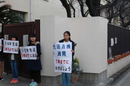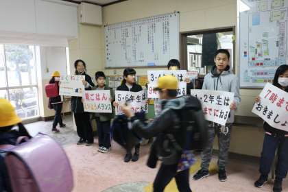 生活点検週間もあと1日です。今週月曜の朝会で、保健委員会の子どもたちが発表し、毎朝登校時間に声掛け運動をしています。今週頑張ったことを、ご家庭でもぜひ褒めてあげてください。そして、3学期の間続けられるよう励ましてあげてください。