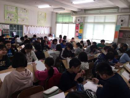5年生は、同じ縦割り班の6年生を目の前に、恥ずかしさも感じながら、個々の特徴を捉えながら描くことができていました。6年生には、約1時間、モデルとして協力してもらいました。ありがとうございました。