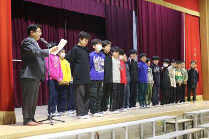 今週は表彰がたくさんありました。図工の作品、4日(日)に三国小で行われたサッカーの試合、ミニバスケットボールの試合の表彰がありました。また、試合は2月でしたが、キックベースも表彰状をもらっていると聞いて、校長先生がキックベースの児童を呼び、紹介していました。このほかにも、いろいろなクラブがあり、指導者のもと日々頑張っています。これからもがんばってくださいね。