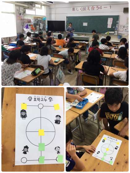 給食時間と昼休みにソンセンニムを招いて、韓国・朝鮮の遊びを教えてもらいました。