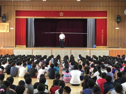本日で。1学期は、終了しました。講堂で終業式が行われました。校長先生からは、1学期の子どもたちのがんばりについて話をされました。中谷先生からは、交通事故に合わないように、水の事故に合わないよう、熱中症にならないように元気に2学期あえるようにという話をされました。思い出に残るいい夏休みにしてほしいとおもいます。