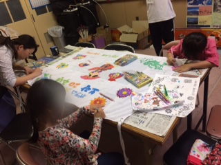 先週までのポラムの時間に、がんばって大きな旗に色ぬりをしてきました。