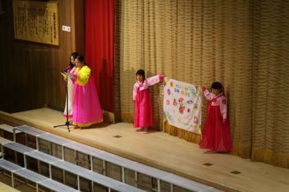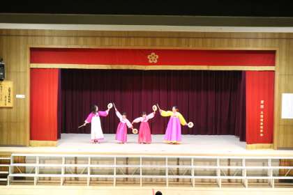 今年20周年を迎えた本校のポラム学級の児童が、ソゴチュムを披露していました。