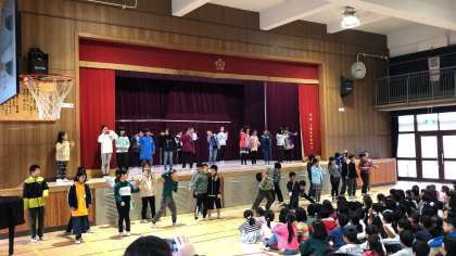 12/12 (水)、児童朝会でダンスフェスティバルを行いました。4年生は、マダガスカルの曲と最近流行している「tik tok(ティクトック)」の曲に合わせて、楽しく踊りました。会場もたいへん盛り上がりました。