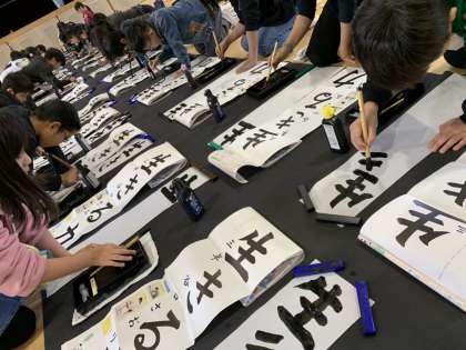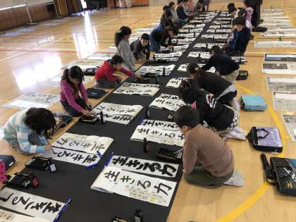 初めは「難しそうだなー」と言っていた子どもたちでしたが、講堂がシーンと静まり返るくらいとても集中して書いていました。