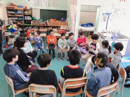 3月8日のなかよしタイムでは、「なかよしあそび」をしました。第2回爆弾ゲーム大会、おしくらまんじゅう、だるまさんがころんだをしました。
