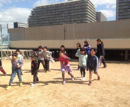 おしくらまんじゅう、だるまさんがころんだでは、外に出て元気いっぱいにあそび、体がぽかぽかになりました。