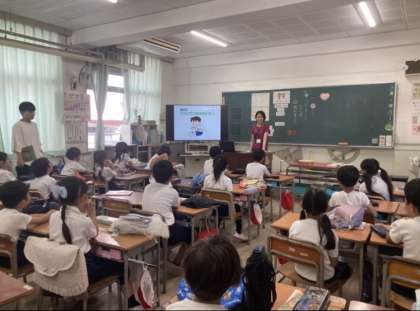 測定をする前に、教室で中尾先生からけがとけがのてあてについてお話をしていただきました。