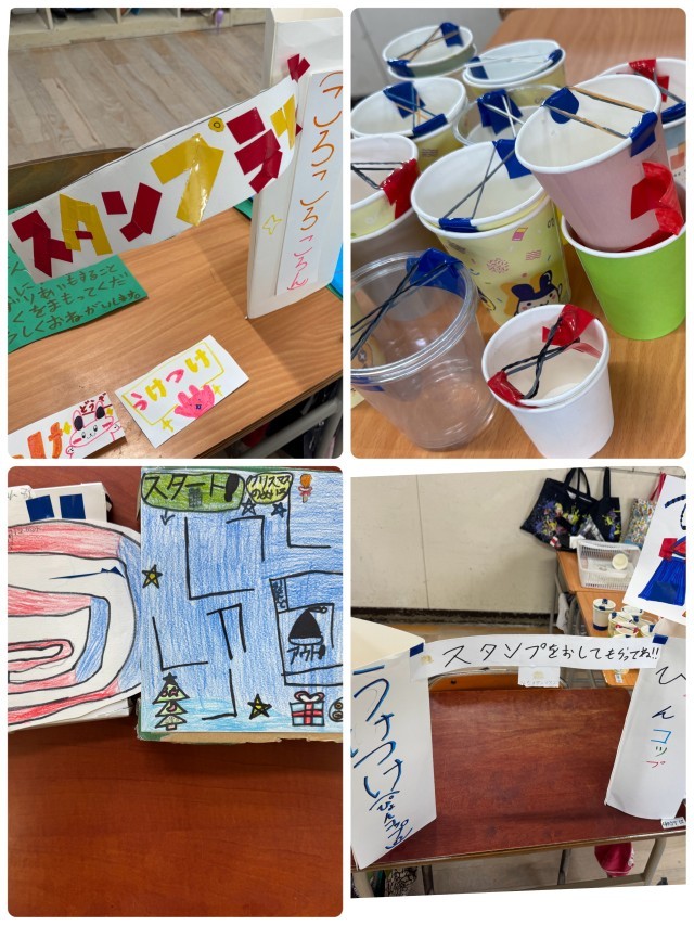 12月12日金曜日の5時間目に1年生を招いて、おもちゃランドを開きました。スタンプカードを準備して、各おもちゃごとに遊び方を工夫して、1年生にわかりやすいように説明を考えていました。当日は、みんな楽しそうに活動していました。「こっちだよ。」「やりかたわかる?」など1年生を思いやる言葉や姿が見られ、学年が上がって、成長している様子に感心しました。
