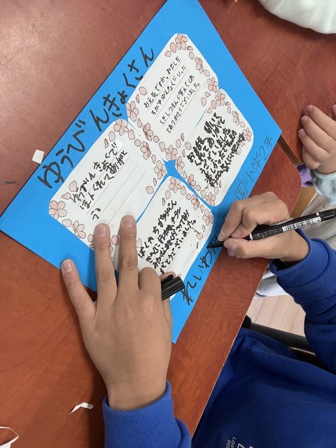 先月に町たんけんに行ってから、各クラスでまとめ作業をすすめました。そして、インタビューにこたえて頂いたり、思いを聞かせてもらったりしたことをふりかえり、感謝の手紙として気持ちを伝えることにしました。三国の町を探検して、人にふれ、感じたことが書けました。
