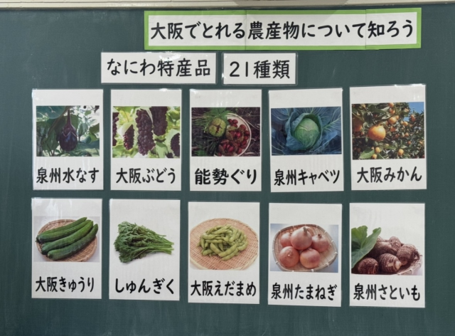 日ごろから大阪府の特産物を食べることで、どのようなよいことがあるかを考え、「スーパーで野菜を見る時、どこ産か見てみる!」と興味津々に取り組むことができていました。