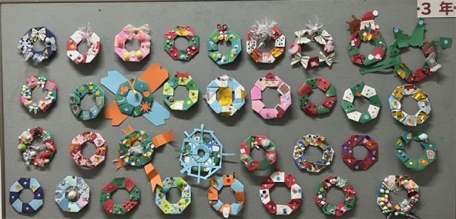 リースは、クリスマスも近いので、終業式が終わった時点で、それぞれの家庭に持ち帰ってもらいました。
