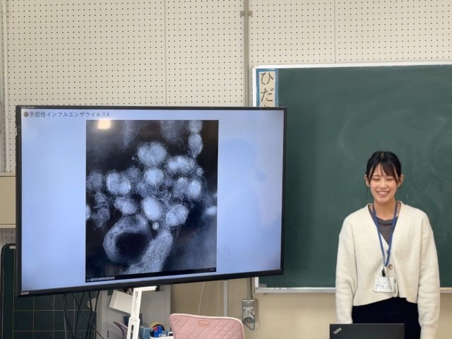 インフルエンザや風邪のウイルスの話があり、みんな興味深々でした。