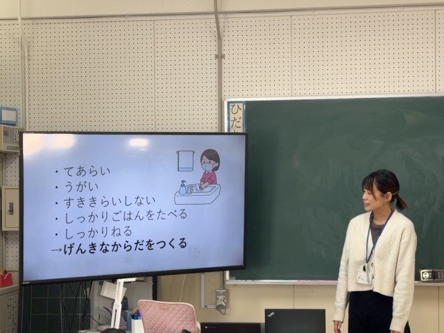 「風邪やインフルエンザが流行しないためにどんなことを気をつけたらいいかな?」と聞かれると、「咳をするときはおさえる」「ごはんをしっかり食べる」「免疫力を上げる」という意見が出ました。