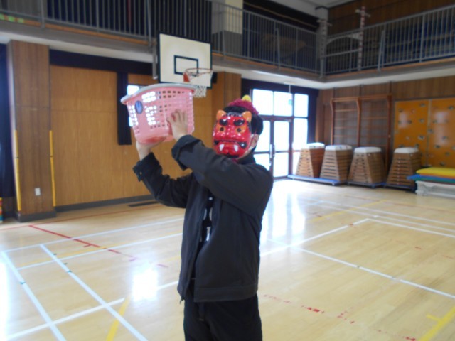 2月3日(火)は節分の日です。今回のなかよしタイムは、縦割りグループで楽しくゲームをしました。先生とじゃんけんをして、負けると新聞の広さが少しずつ小さくなっていくゲームでは、だんだんと小さくなっていく新聞紙にみんなが乗れるように「足を片方あげよう」や「もう少し真ん中によって」など高学年の児童が中心となって声掛けをしてくれました。その後は、鬼の仮面をかぶった先生のもっているかごに、玉をどれだけ入れられるかをグループで競いました。玉をたくさん投げることで、邪気を払い、無病息災をみんなで願いました♪