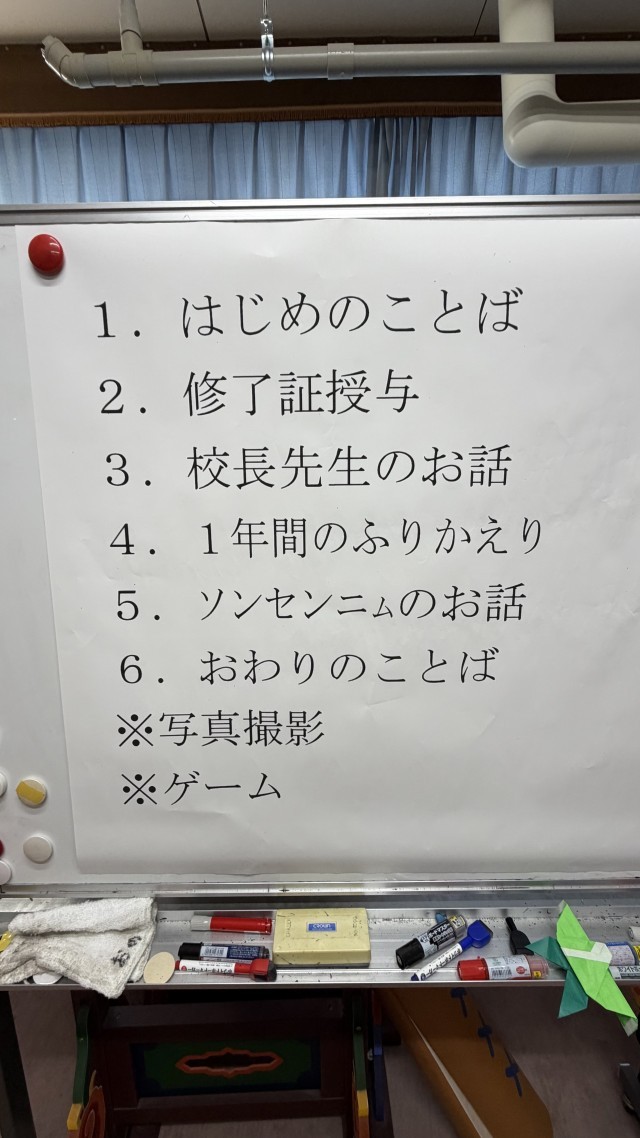式では、子どもたち一人ひとりがこの1年間を振り返り、頑張ったことや心に残っていることを、みんなの前で堂々と発表しました。成長を感じられる、素晴らしい発表でした。また、最後には感謝の気持ちを込めて、ソンセンニムへ色紙と花束を渡しました。あたたかい拍手に包まれ、心温まるひとときとなりました。