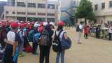 5年生が、鉢伏高原に着きました。全員が無事に到着しました。鉢伏管理センター前で...