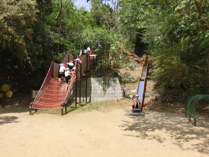5月13日(月)5年生が須磨離宮公園へ遠足に行きました。一日とてもいい天気で、子どもたちはアスレチックコースを回ったり、長いすべり台をすべったりと、とても楽しんでいる様子でした。