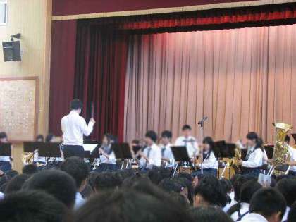 毎年来ていただいている、東淀川高校の吹奏楽部のみなさんに、今年度は、9月27日の土曜参観の日に来ていただきました。