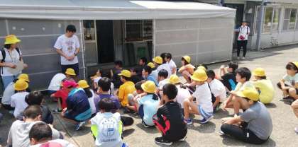 弁当の後、部屋割りをして避難訓練。そして魚つかみに。