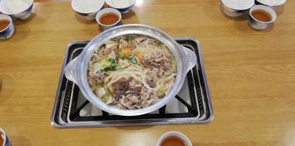 夕食は鴨鍋。みんなそろっておいしくいただきました。