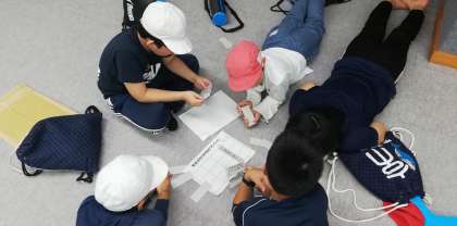 大掃除、荷物の整理を順調に終え、先生ばかりが住むマンションというゲームをしました。カードにあるヒントをもとに、架空のマンションの部屋割りを当てるゲーム。順を追って考えなければむずかしいゲームですが、チームワーク良く取り組みました。