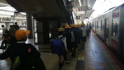広島駅に着きました。疲れているのに、みんなから遅れてはいけないと、懸命に追いかける姿は素敵です。