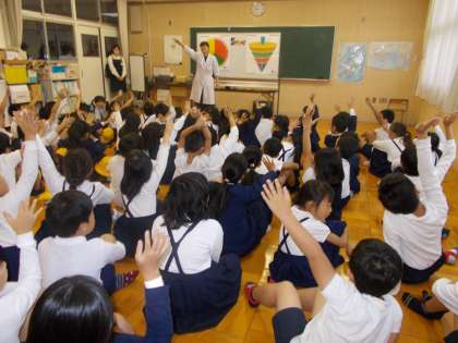社会科の学習で、ライフへ社会見学に行きました。まずは、ライフの方が学校で食べ物の大切さ、栄養のバランスの話をしてくださいました。今までに栄養教育で学んできたことがここでは発揮され、話を聞きながら、自分たちの知識を重ねて楽しく学ぶことができました。