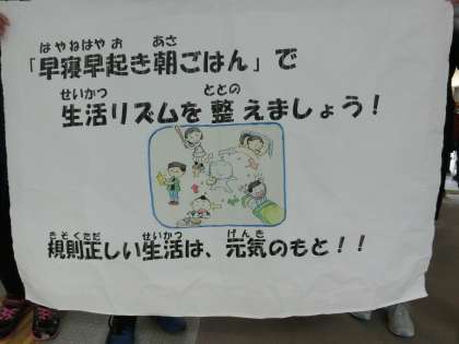 1学期に引き続き、環境委員会の5・6年生が毎朝校門に立ち、規則正しい生活や、睡眠の大切さを呼びかけいました。また、1週間を通して家庭で睡眠チェックシートを記入していただきました。