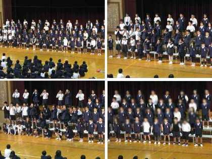 4年生は、詩「かく」と、詩「えらいこっちゃ」、詩「こんなじゃんけん知ってる?」、歌「いつだって!」を披露しました。詩は、大変面白い詩でした。歌は、とても元気よく、明るく、上手に歌えました。