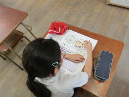 また、「自己紹介カード」の続きをしました。色ぬりをし、もうすぐ完成です。掲示するのが楽しみですね!