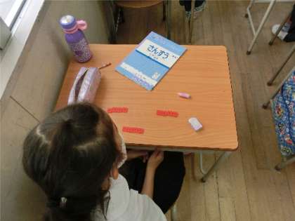 学習に集中して、一生懸命に取り組んでいました。算数では、「わり算」のべんきょうをしました。今日の問題は、「12÷4」です。おはじきを使って、考えました。さぁ、答えはわかったかな?