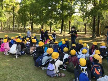 8カ所のポイントをグループで探し、キーワードとお宝カードを集めています。緑いっぱいのすばらしい自然環境の中でグループで協力して活動することができました。