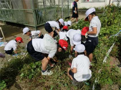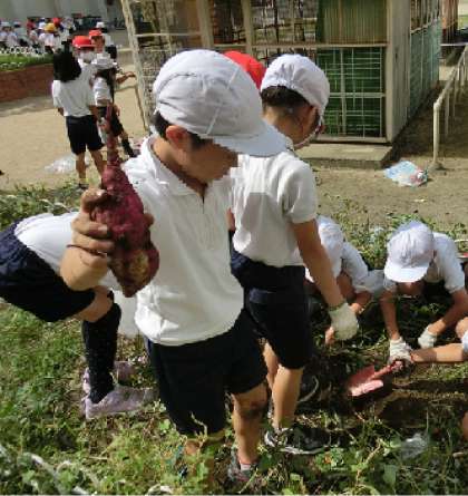 昨日、みんなで育てたおイモを掘りました。どんなおイモが出てくるかドキドキ、ワクワク。力を合わせて掘り進めると、大きなおイモが!?みんなで喜びの声が上がり、楽しくおイモ掘りができました。