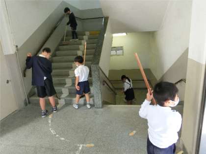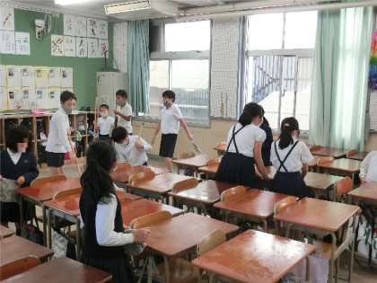 なかよし班で清掃活動を行いました。6年生が中心となり、高学年が低学年へそうじの仕方を教えていました。低学年は、なかよし班でそうじすることが楽しかったようで、笑顔が見られました。高学年はお手本となるように、ていねいにそうじしていました。「さすが高学年!!」という一面も見られました。これからの高学年の皆さんは、みんなのお手本となるようにがんばってほしいです。